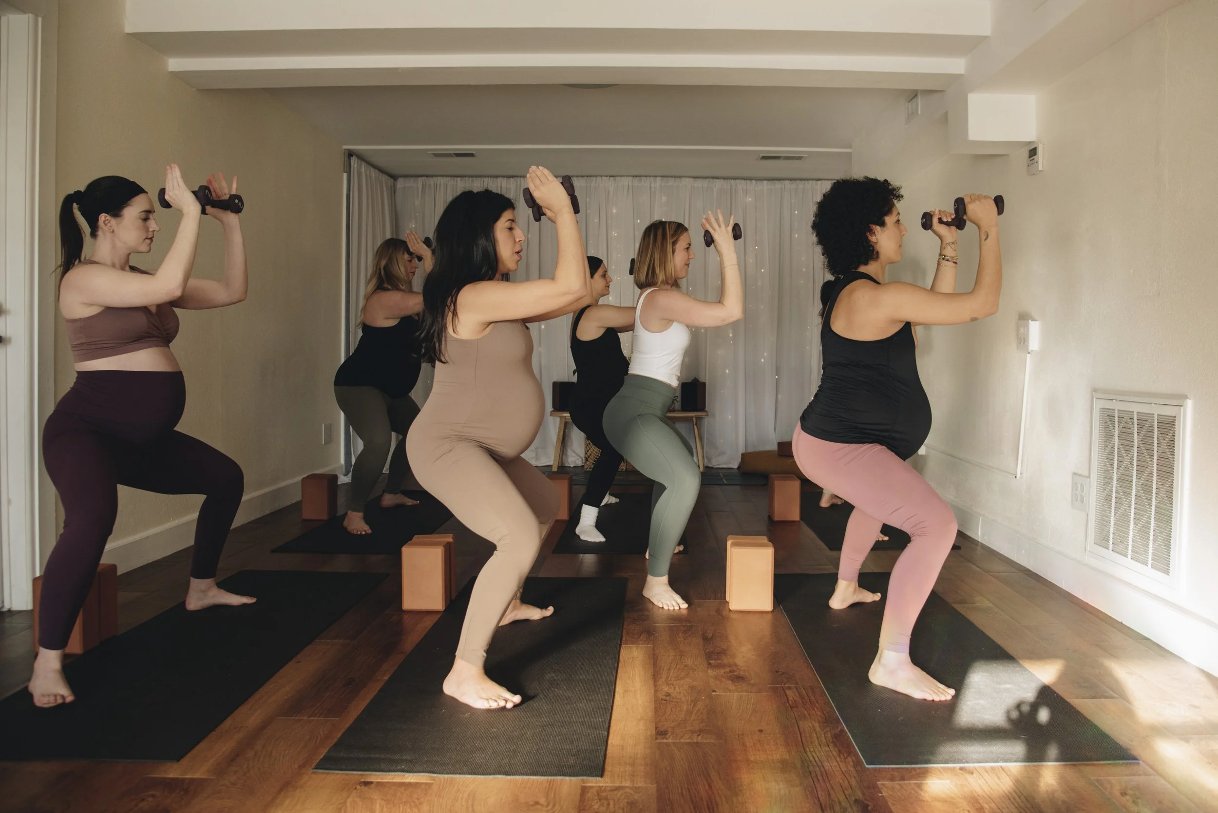 No yoga experience required. Every class is designed specifically for pregnancy and postpartum bodies.